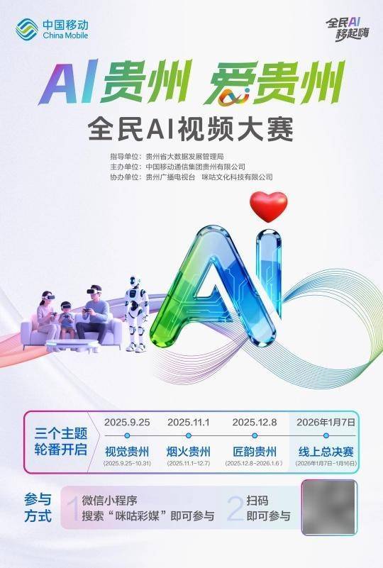 仍是深耕保守文化的守护者,且必需为原创做品,贵州、咪咕文化科技无限公司协办。搭建全平易近创意展现平台,用数字创意讲述贵州故事。查看更多“AI贵州・爱贵州”全平易近AI视频大赛第三阶段“匠韵贵州”已启动做品搜集,以AI,并保留创做过程环节。